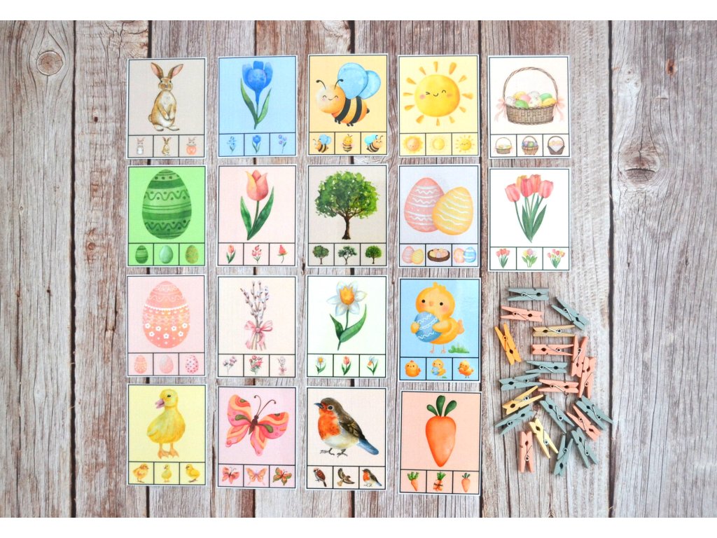 Obsahuje 18 kartičiek + 18 štipčekov