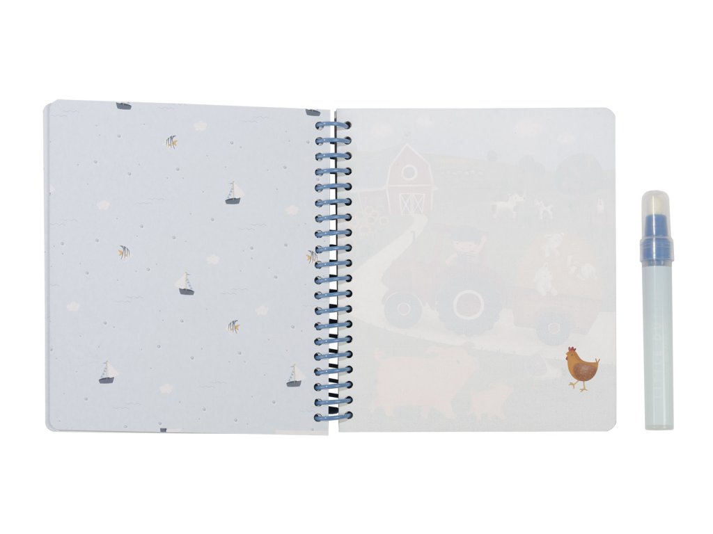 Knižka s piatimi ilustrovanými stránkami je opakovane použiteľná. Vďaka krúžkovej väzbe z pevného kartónu drží otvorená na pohodlné maľovanie.