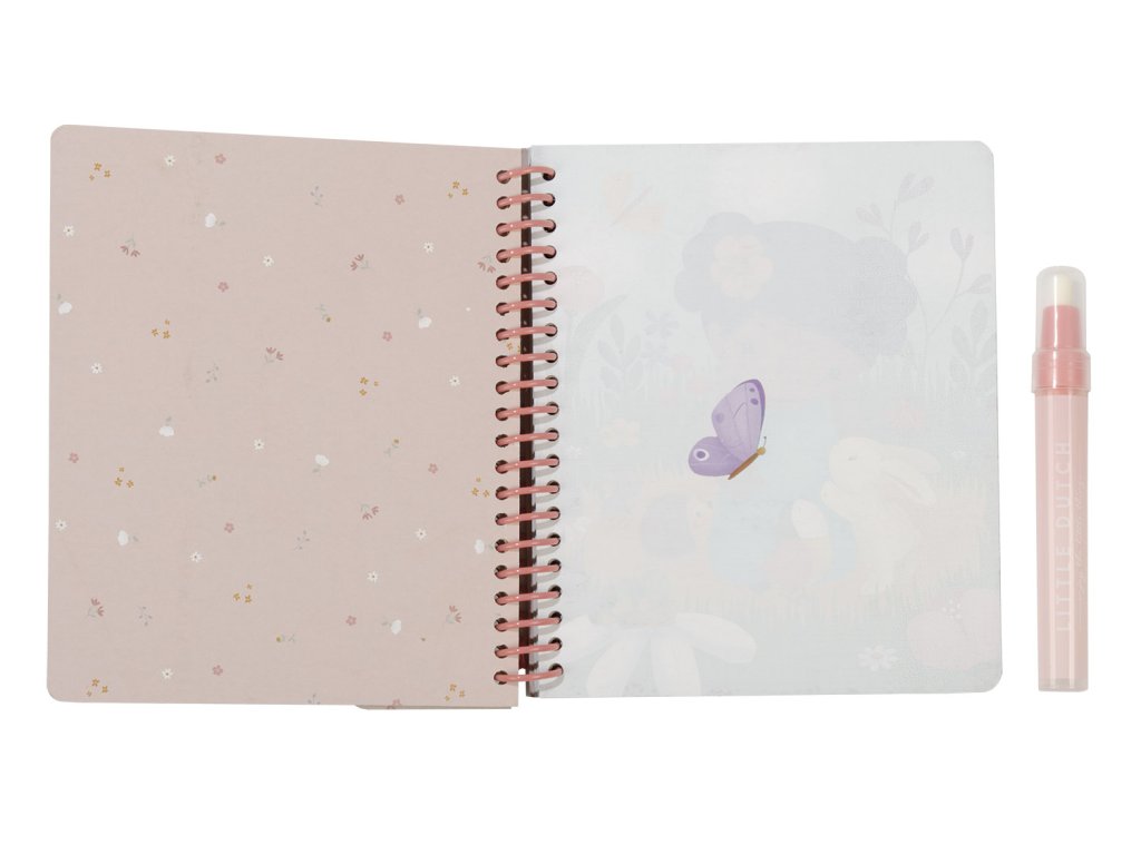 Knižka s piatimi ilustrovanými stránkami je opakovane použiteľná. Vďaka krúžkovej väzbe z pevného kartónu drží otvorená na pohodlné maľovanie.
