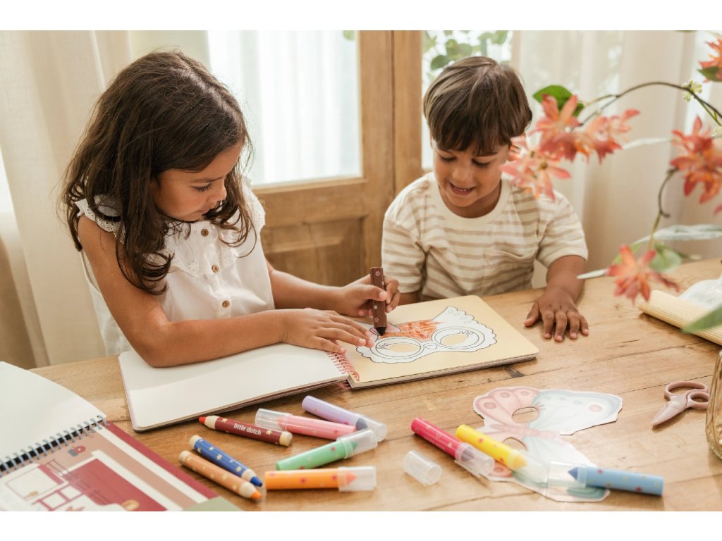 Súčasťou balenia sú bezpečné detské nožnice, vďaka ktorým môžu deti masky vystrihovať samostatne a bez rizika.