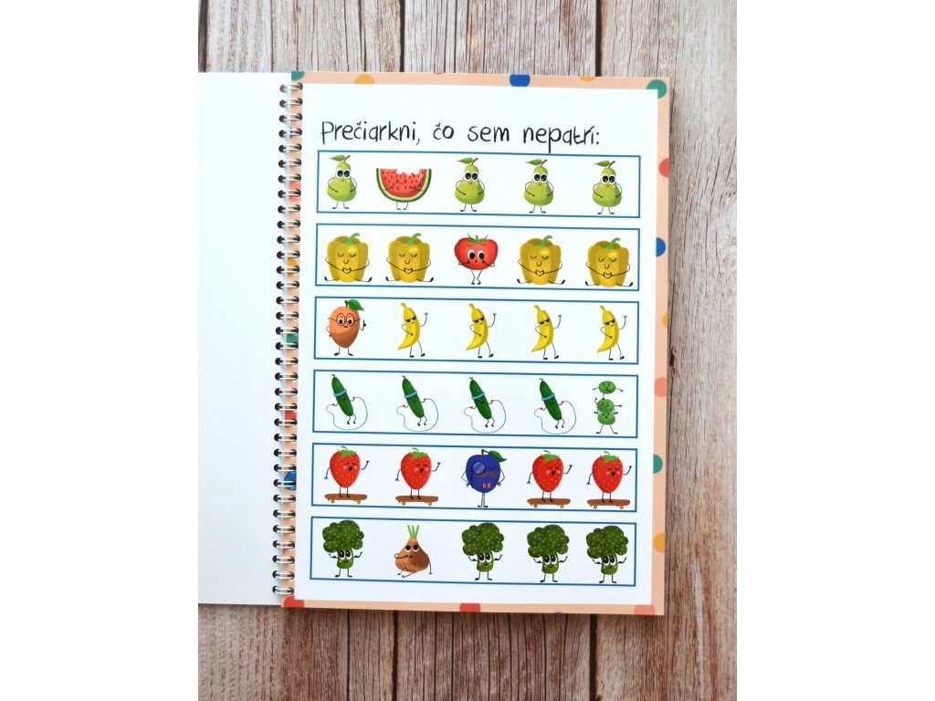 - 10 interaktívnych aktivít, ktoré sú riešené na suchý zips a zmazateľnú čiernu fixku, ktorá je súčasťou zošita